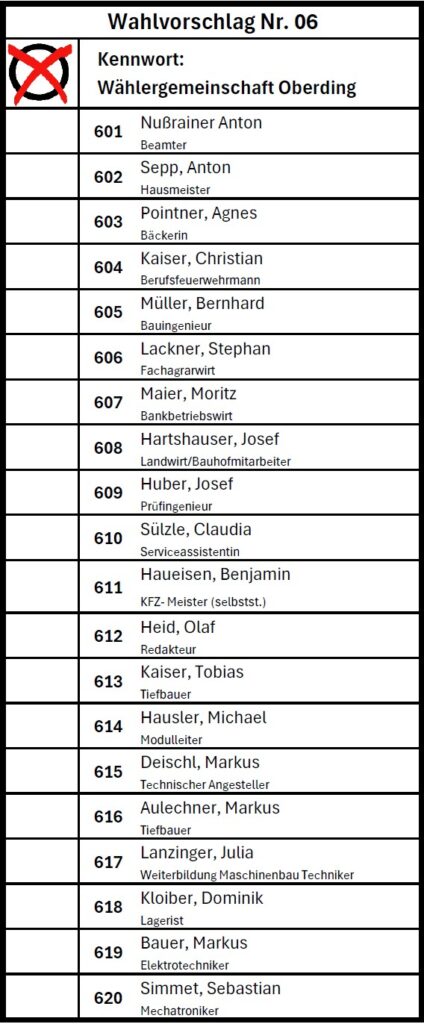 Jede Stimme auf einer anderen Liste ist für die Ortschaft Oberding verloren!