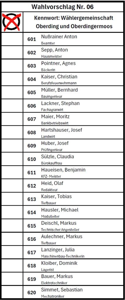 Jede Stimme auf einer anderen Liste ist für die Ortschaft Oberding verloren!