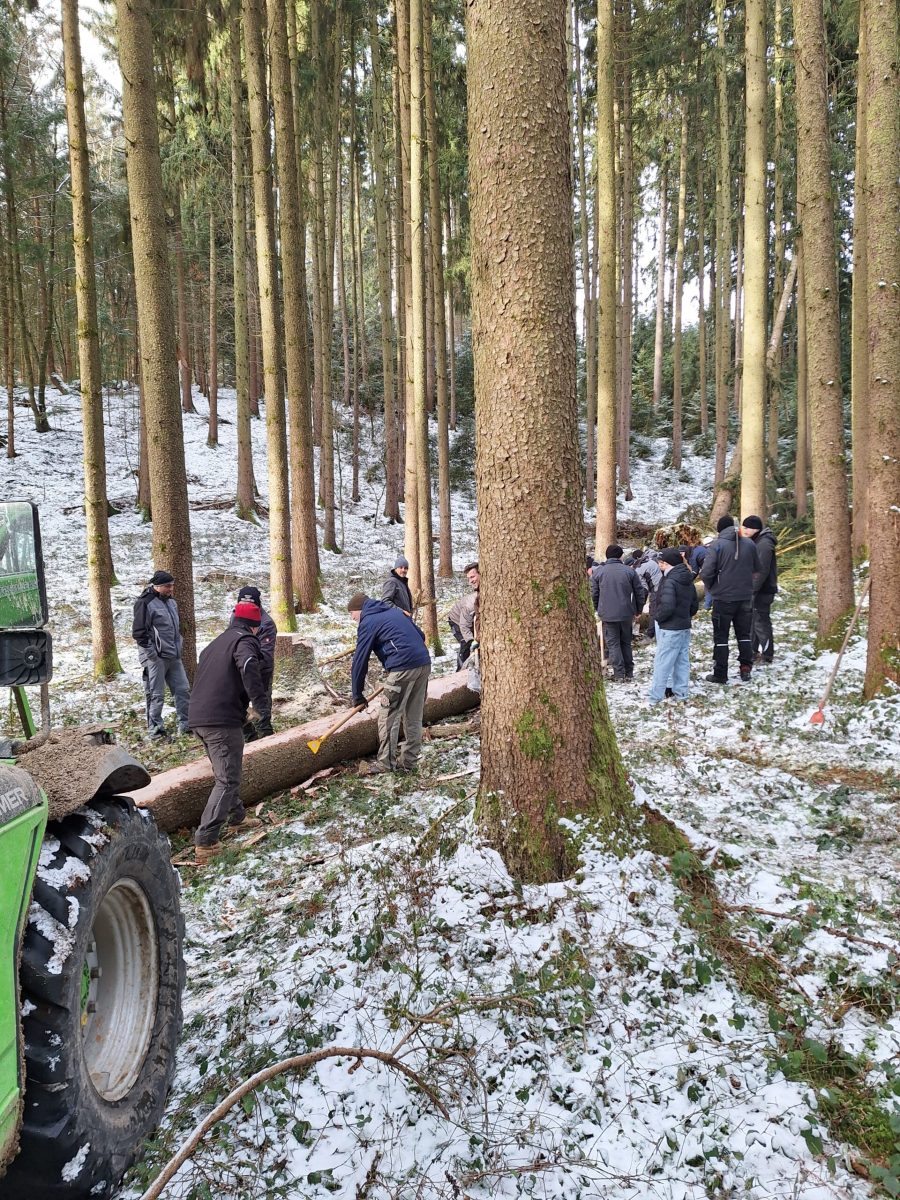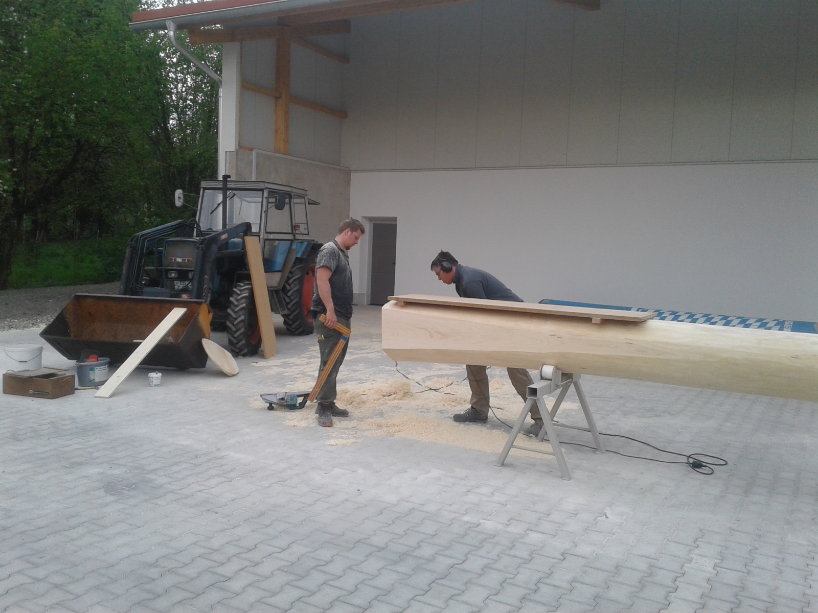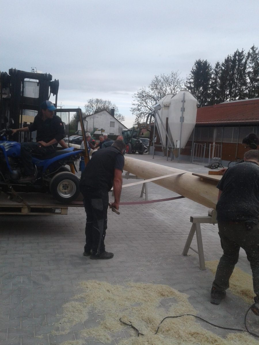 Mitte April wird dann der Baum in die Ortschaft gebracht, um dort für das Aufstellen am 1. Mai vorbereitet zu werden. Hobeln, Schleifen, Bemalen und vor allem das Aufpassen stehen dann im Vordergrund.