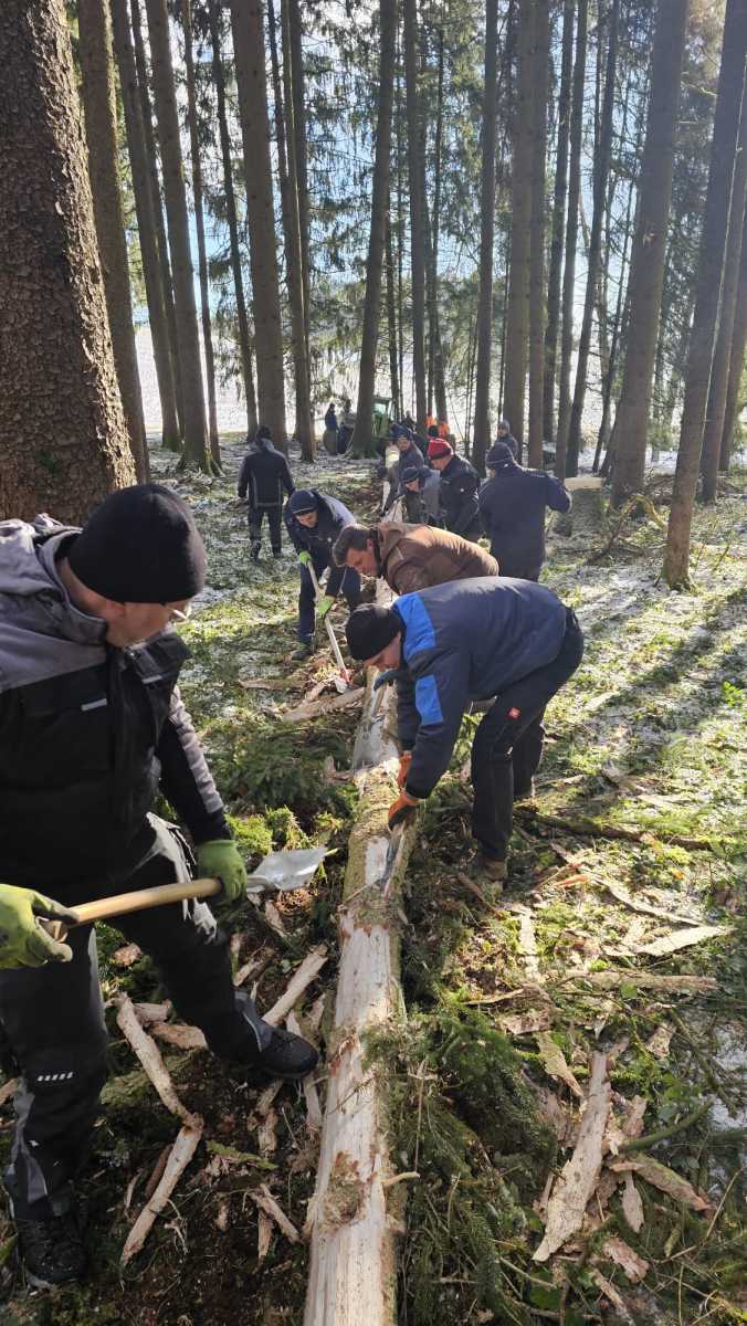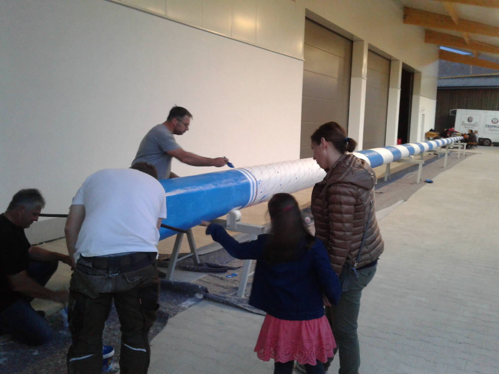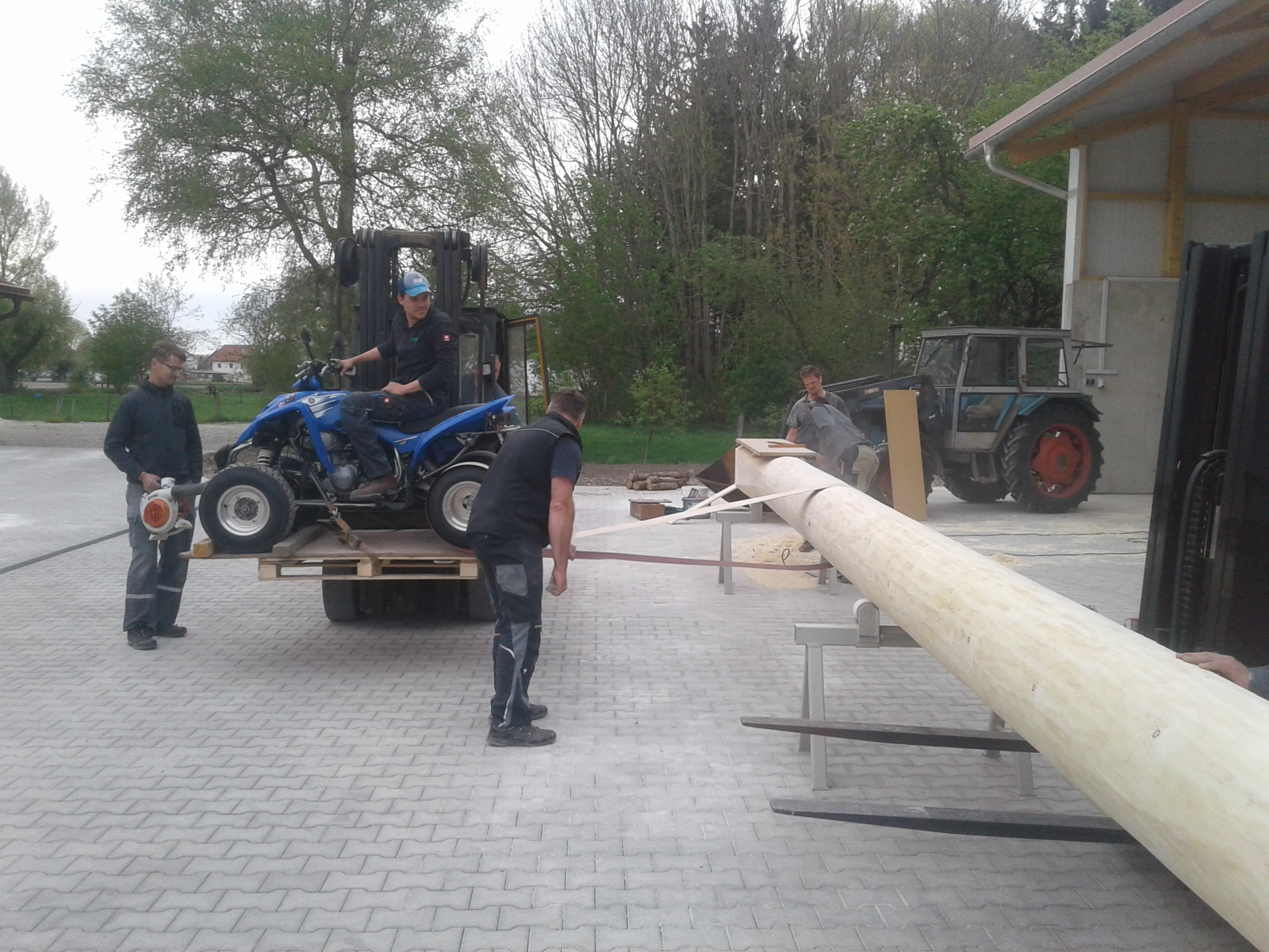 Mitte April wird dann der Baum in die Ortschaft gebracht, um dort für das Aufstellen am 1. Mai vorbereitet zu werden. Hobeln, Schleifen, Bemalen und vor allem das Aufpassen stehen dann im Vordergrund.